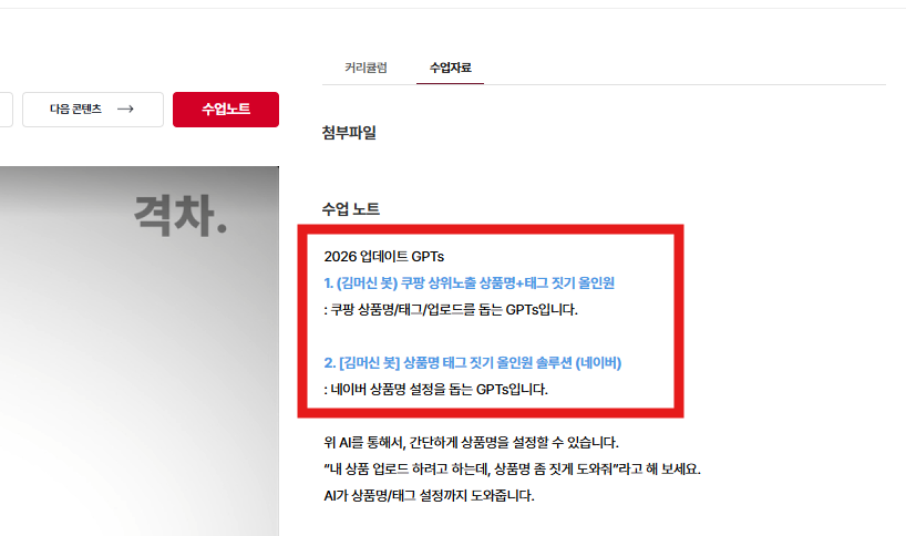 클래스를 신청하신 분들이 배우고 있는 커리큘럼입니다. 콘텐츠는 배우기 쉽게 영상, 수업노트, 첨부파일로 구성되어있습니다.